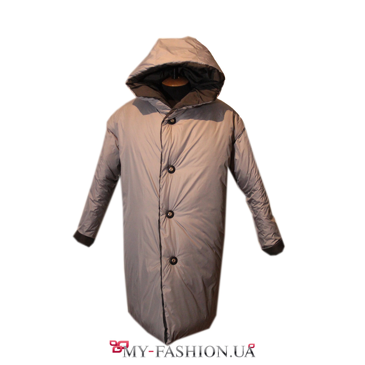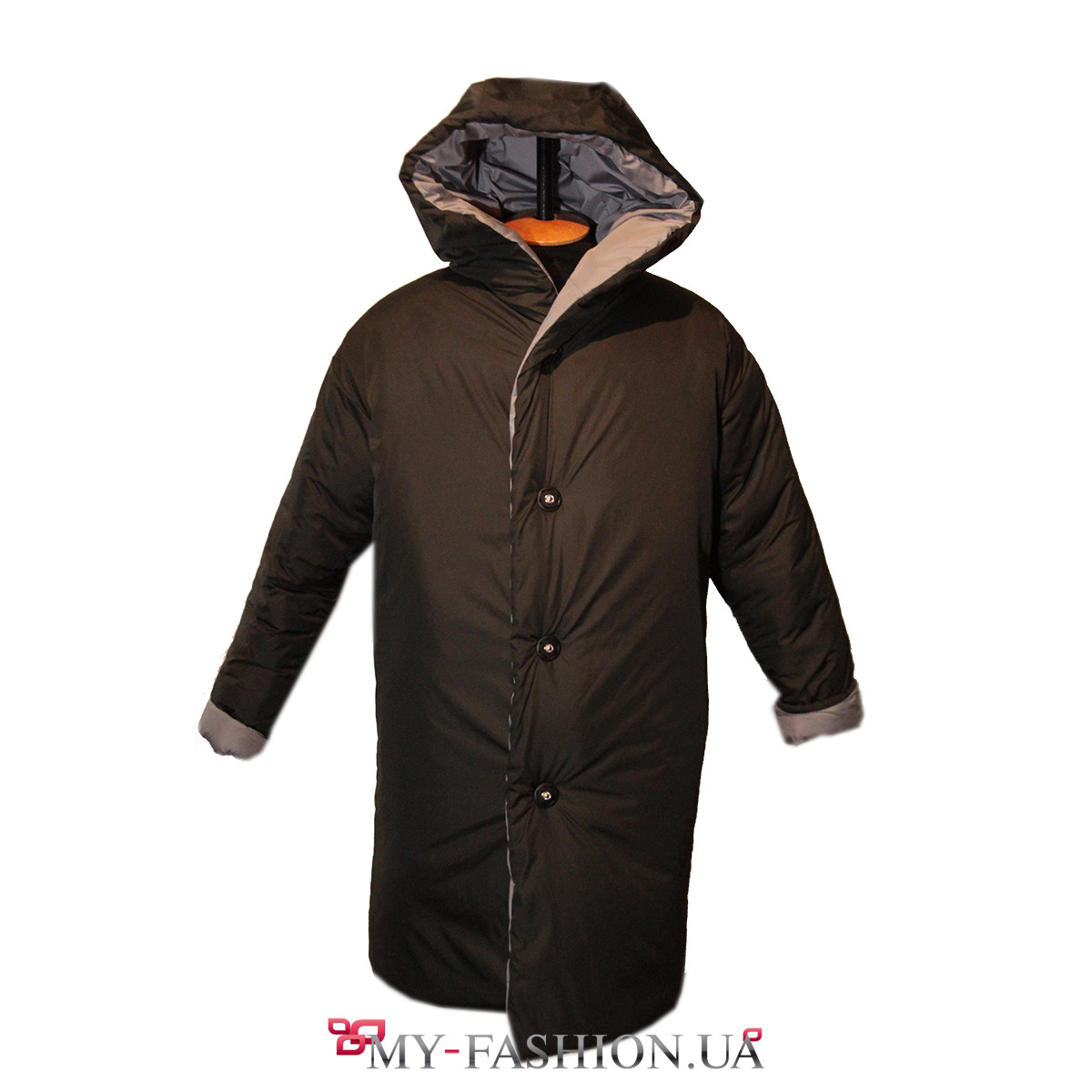 Двусторонний пуховик классического кроя прекрасно подойдёт как девушкам, так и парням. Изделие универсальное не только в предназначении, но и в цвете: вывернув пуховик наизнанку, вы без труда смените его цвет. Представленная модель очень тёплая: 3 см синтепонового наполнителя прекрасно уберегут вас от холодного ветра. Удобный капюшон отлично заменяет шапку. Материалы: плащевая ткань, синтепон. Можно изготовить на заказ в любом необходимом размере.