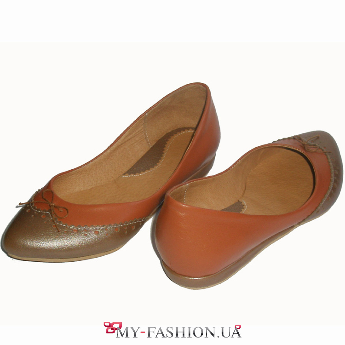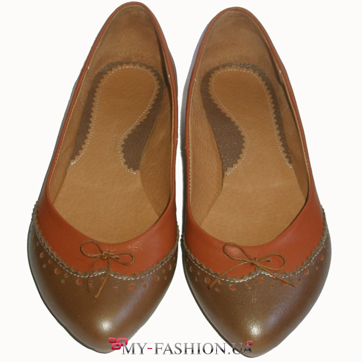 Стильные коричневые с терракотом туфли-лодочки . Женские кожаные туфли имеют сверху необычный вырез, подчеркивающий Ваши ножки, а также отрезной фигурный носок, декорированный фигурным краем и перфорацией. Маленький бантик на туфельке придает ей игривый вид. Модель туфель имеет клиновидный каблук высотой 1см для максиамльного комфорта и удобства Вашей ножки.