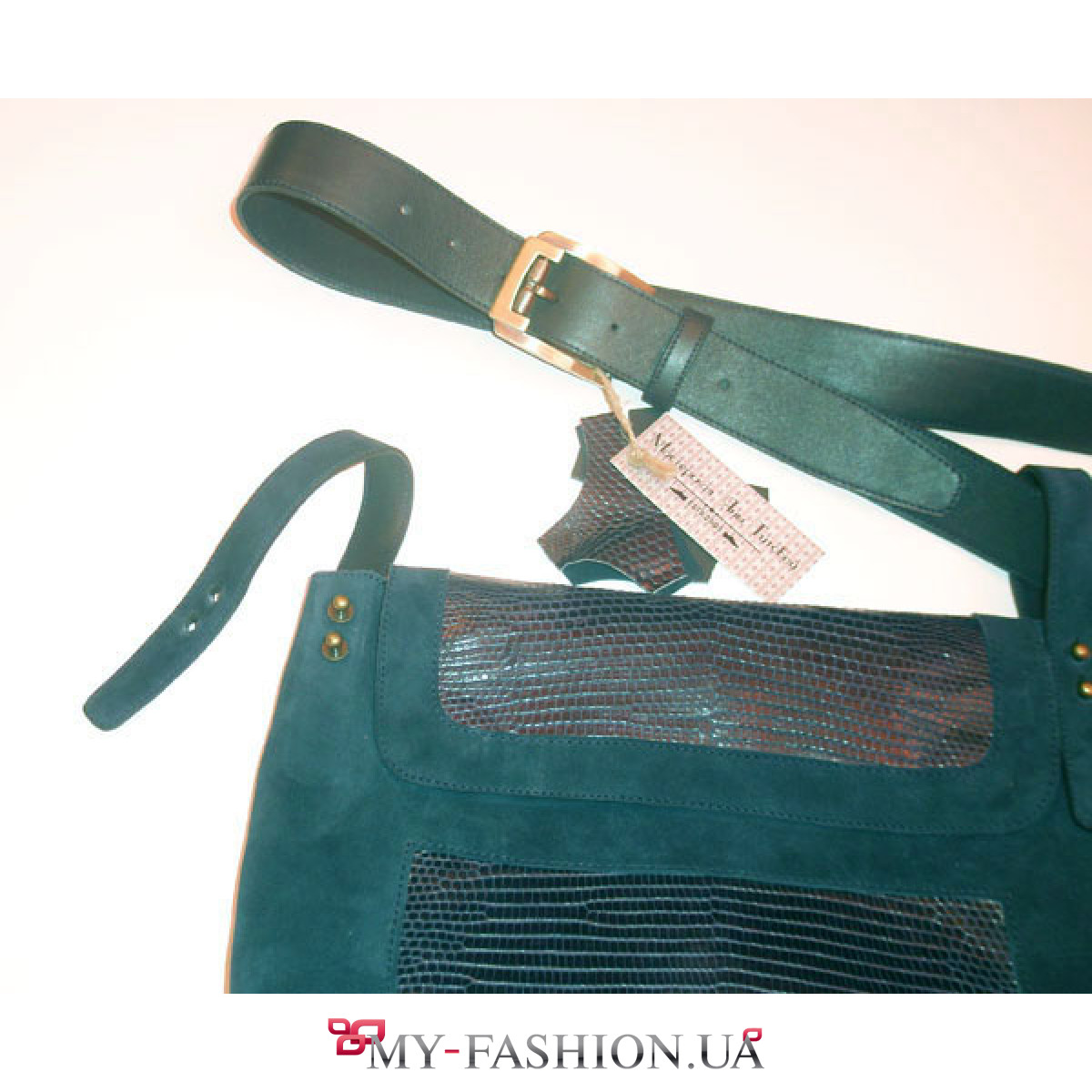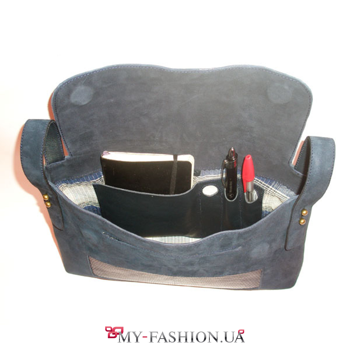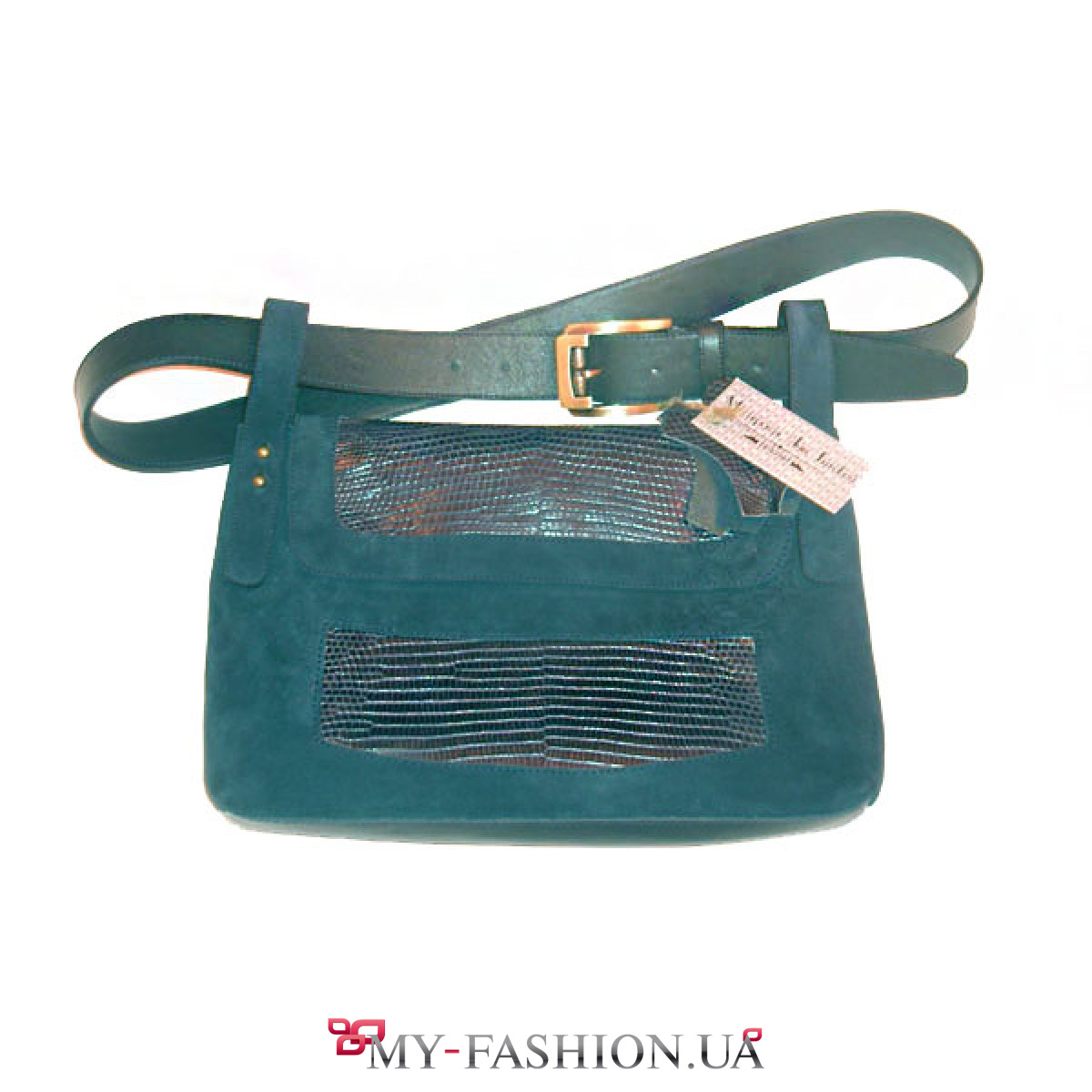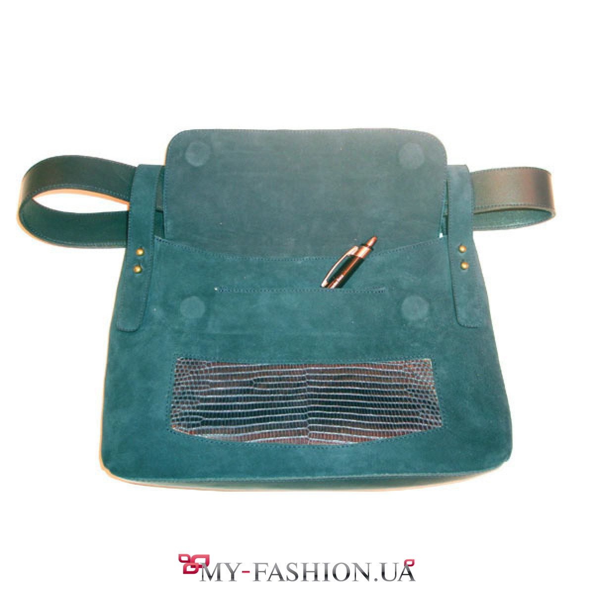 Мужская сумка-пояс выполнена из комбинированных высококачественных натуральных материалов. Изделие крепится к поясу с помощью ремешков с кобурными застёжками. Застёгивается на клапан с потайными магнитами, под клапаном есть наружный карман. Внутри сумка имеет карман для мелочей и три отсека для ручек, подклад выполнен из кожи и текстиля. Небольшая, но вместительная модель. Размеры: 28х18х4 см. Материалы: натуральная замша, лицевая кожа, кожа игуаны. Изделие ручной работы.