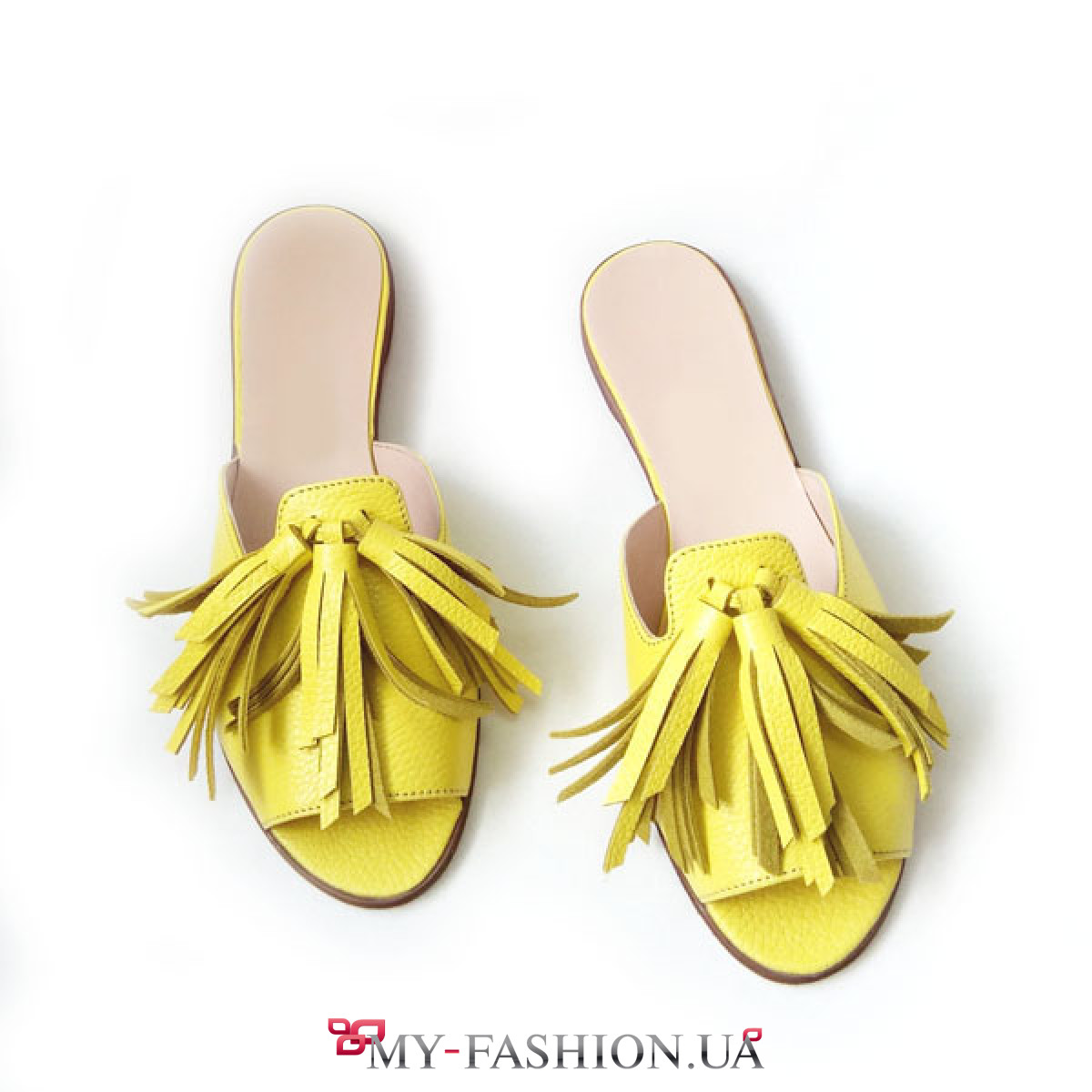 Стильные лиммоного цвета мюли с кожаными кисточками разной длины. К сожалению в наличии нет данной пары обуви, но ее возможно изготовить на заказ в индивидуальном порядке и в необходимом вам цвете. Модель с открытым носочком выполнена из фактурной кожи. Внутри натуральный кожаный подклад. В наличии размеры 37, 41. На заказ доступны с 33 по 42 размеры. Очаровательная сумочка ручной работы завершит ваш образ. (Цвет изделию при заказе можно изменить).