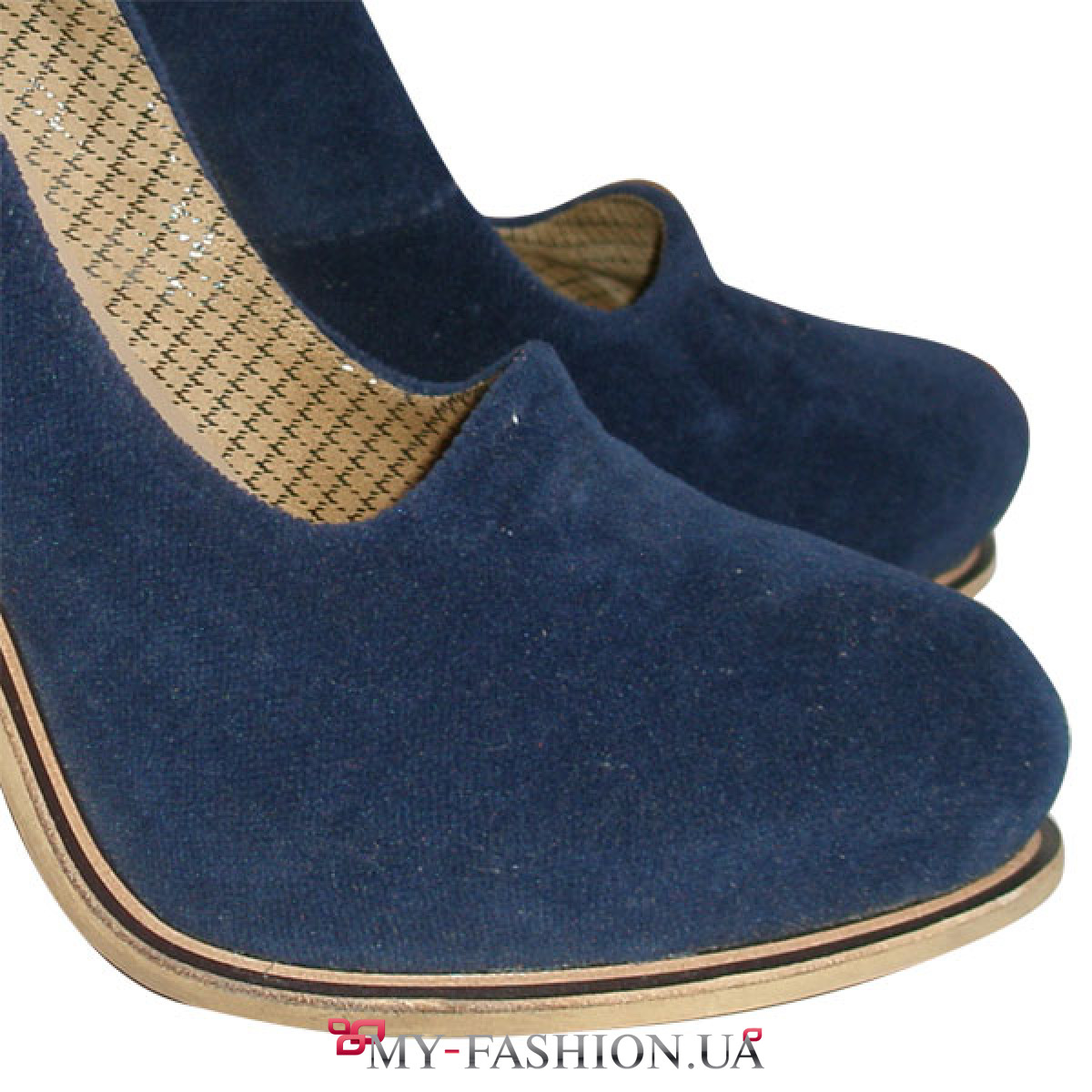 Туфли женские. Материал верха – бархат синий, подкладка – натуральная кожа. Высота каблука – 10см, обтянут кожей. Скрытая платформа – 2см. Обновляя гардероб не забудьте про сумку. В нашем огромном каталоге женских сумок обязательно найдётся то что нужно.