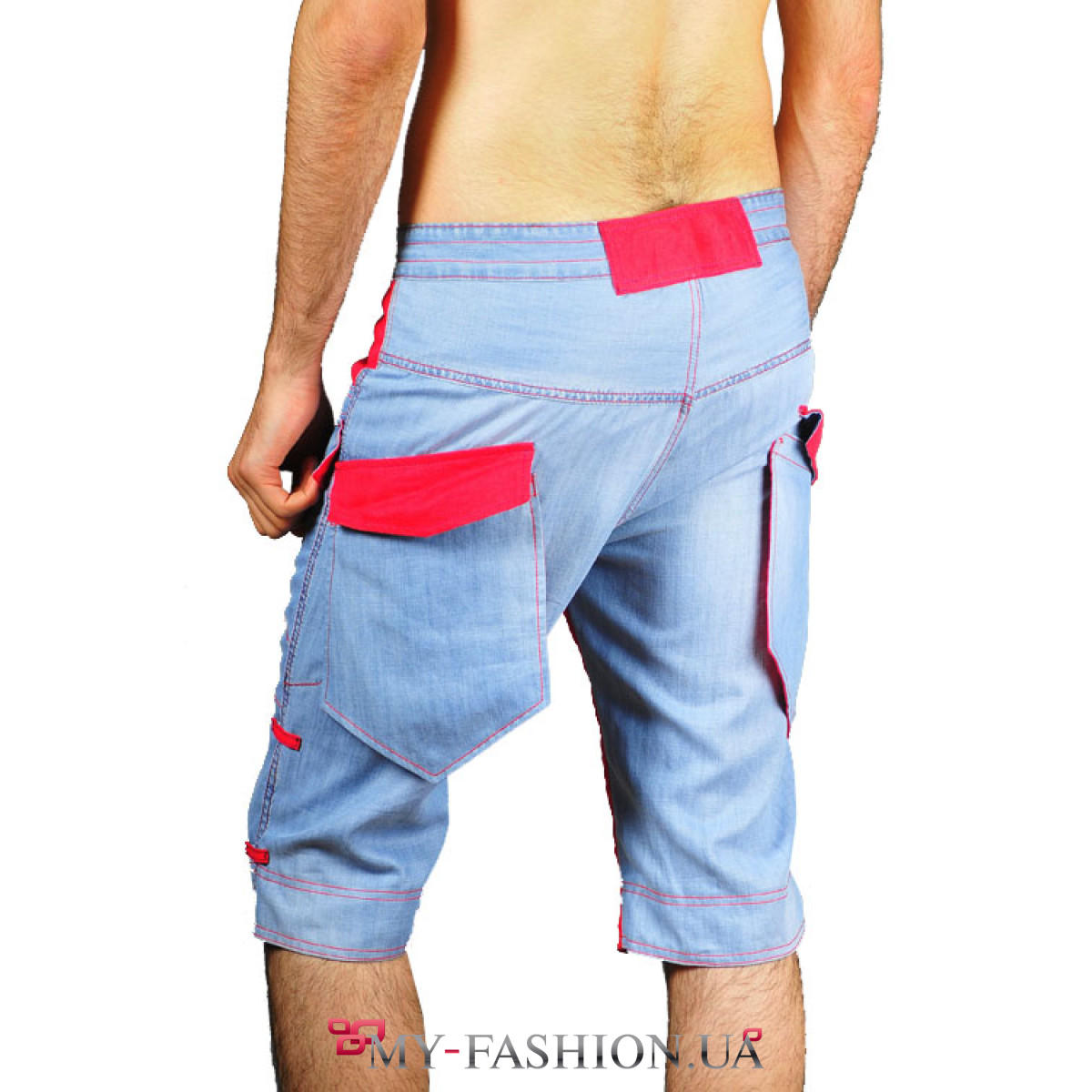 Джинсовые бриджи с ярко красными акцентами и оригинальными карманами. А чтобы подчеркнуть ваш стиль можно купить сумку, и ваш новый образ будет безупречен. Мужская дизайнерская одежда всегда отличалась своей оригинальностью и привлекательностью. Стоит отметить что данные вещи изготавливаются в нескольких экземплярах и не будут повторяться снова. Спешите купить.