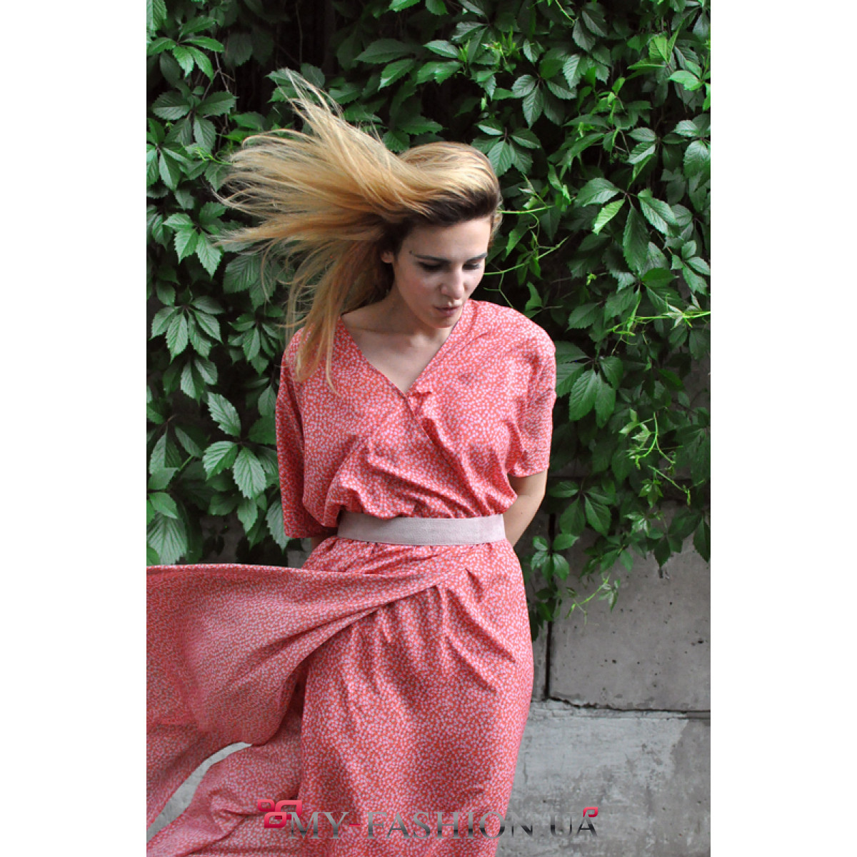 Очень свободное, лёгкое и удобное дизайнерское платье розового цвета с необычным мелким принтом. Изделие с цельным рукавом до локтя, свободная полочка запахивается, создавая ощущение максимального домашнего комфорта. Талию подчёркивает светлый пояс. Оригинальные разрезы на рукавах гармонично перекликаются со шлицами на длинной прямой юбке. Состав: 100% полиэстер. В наличии размер М, остальные - под заказ. Также эта модель представлена в голубом и оранжевом цветах.