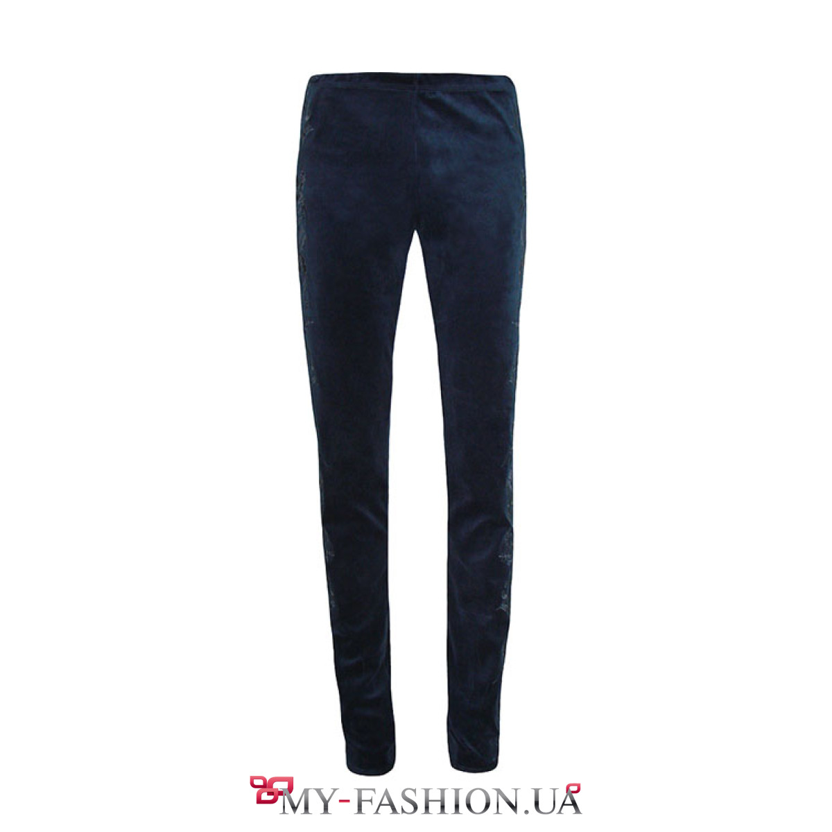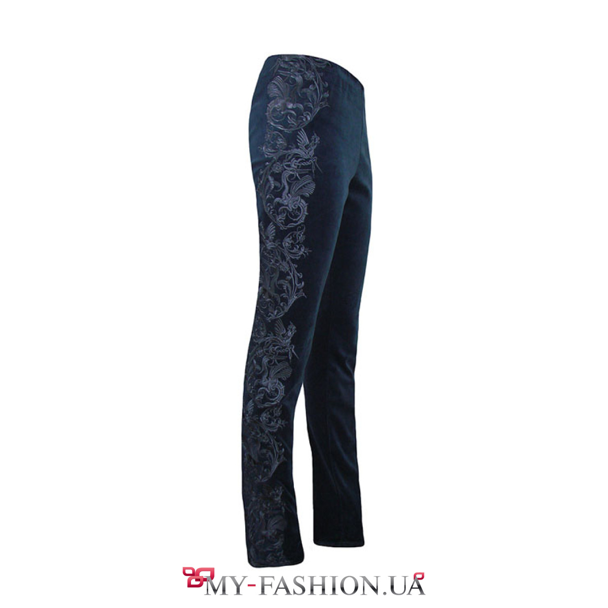 Штаны модные женские купить. Оригинальные штаны "Причудливые существа" с вышитыми вставками по бокам штанин. Пояс втачной на резинке. Необычный дизайн узкой модели брюк, несомненно понравится современным девушкам, которые хотят выразить свою индивидуальность и подчеркнуть оригинальный стиль. Штаны можно сочетать с яркими футболками и дополнить авторской курткой от Алексея Залевского. Красивые короткие платья Вы выберете в основной категории нашего каталога.