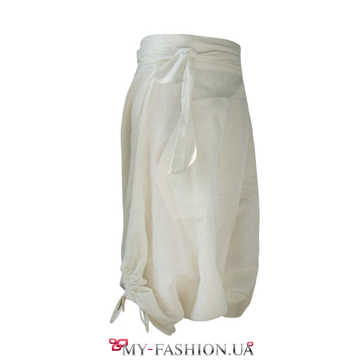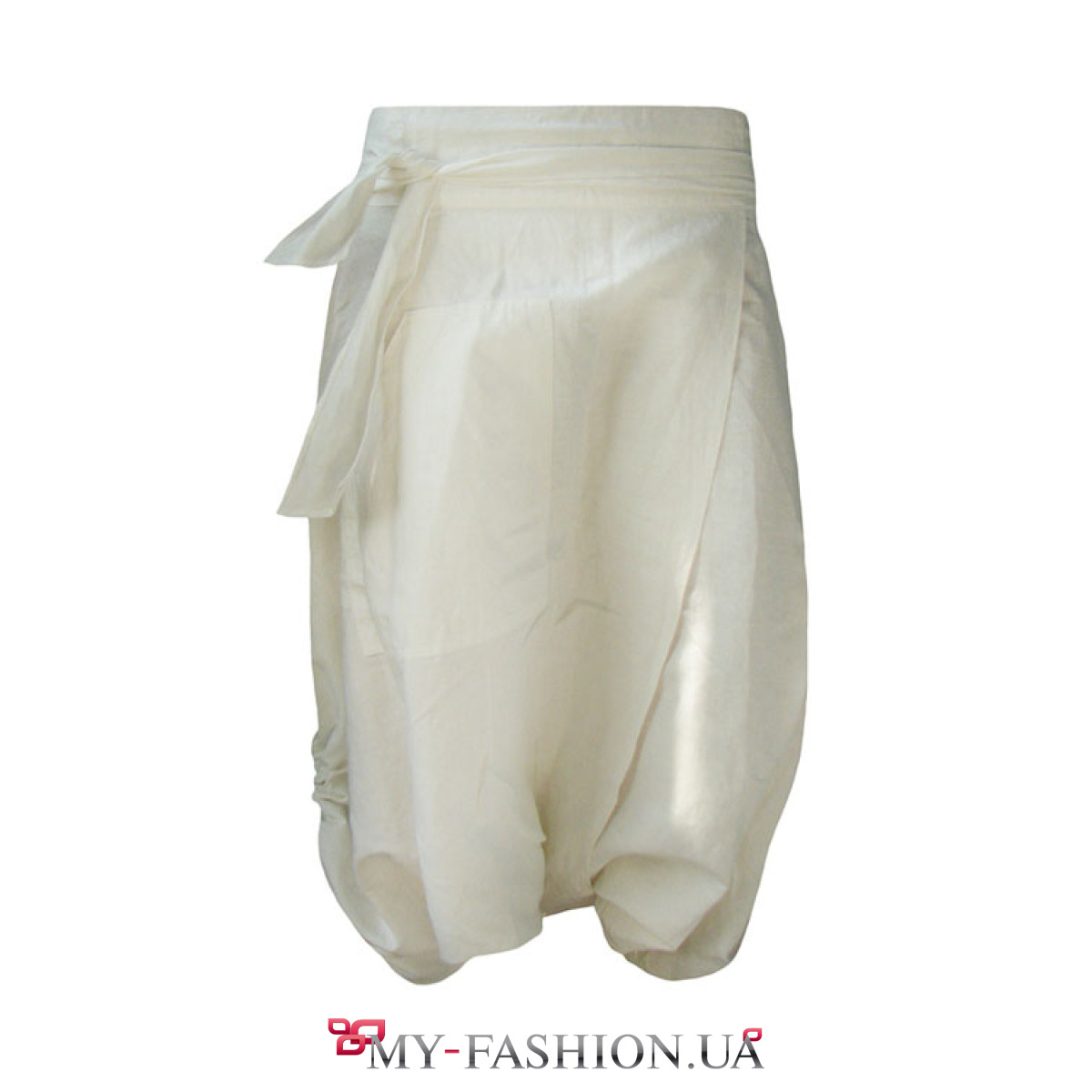Штаны бриджи купить. Модные летние штаны бриджи из натурального легкого и приятного к телу льна. Очень практичная модель штанов на завязках предоставлена Алексеем Залевским в интернет магазине MY-FASHION. Бриджи на запах с высокой посадкой. Фиксируются штаны бриджи на поясе при помощи декоративной ленты, а внизу высоту изделия крепит фиксатор- жгут. В наличии штаны бриджи размеров S, M, L. Неповторимые короткие платья Вы увидите в основной категории нашего интернет магазина.