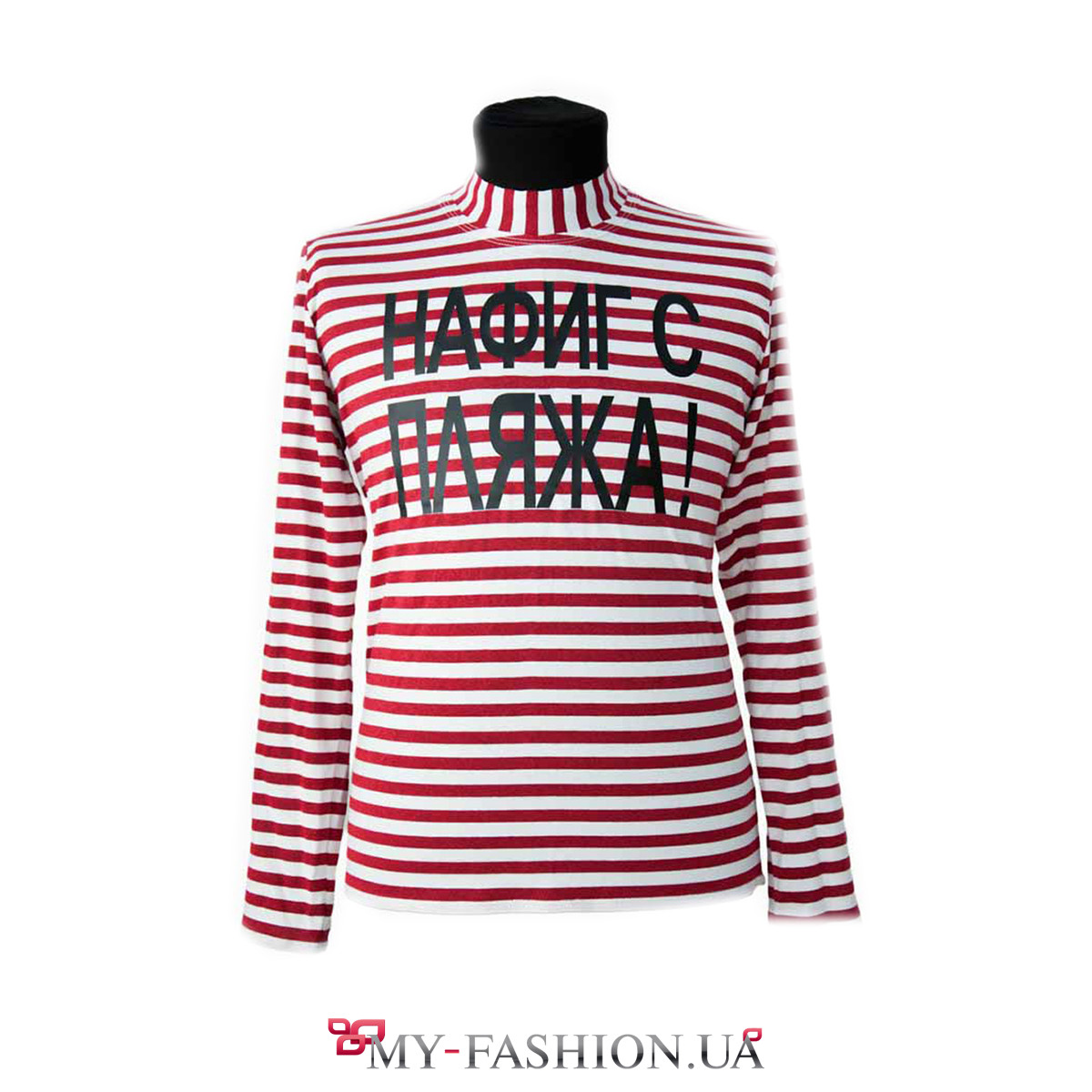 Украинские дизайнеры известны своей неповторимой одеждой и принтами, и этот полосатый тёплый реглан — яркий тому пример. Пёстрая расцветка обеспечит внимание окружающих, кричащая надпись подчеркнёт чувство юмора. Эта модель хорошо подойдёт для вечеринок в кругу семьи и друзей, а также для концертных и торжественных мероприятий юмористической направленности. Хорошо сочетается с джинсами любого цвета и фасона.