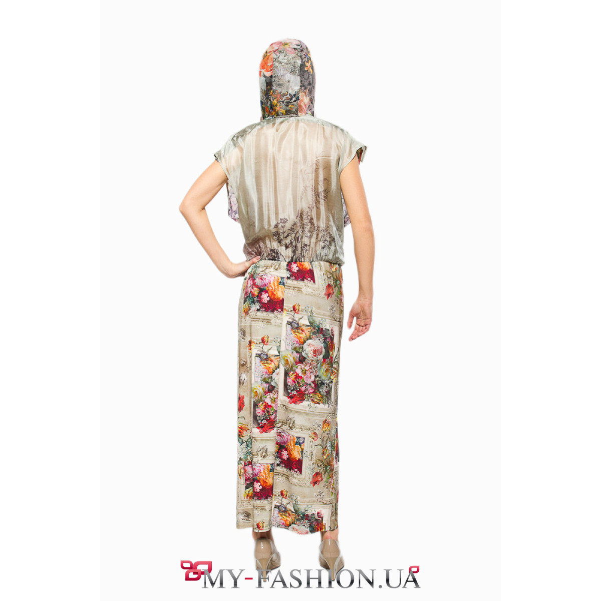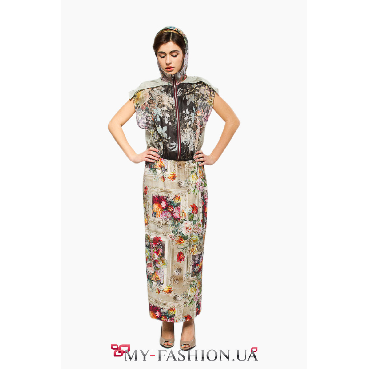 Красивое необычное платье с коротким рукавом на удобнйо молнии. В этом изделии выгодно сочетаются разные материалы и расцветки. Мягкость линий и насыщенность цветов изделия подчеркнут вашу женственность и грациозность. Свободная полочка красиво контрастирует с юбкой прямого кроя, небольшой капюшон является необычным элементом спортивного стиля. Материал: шёлк, трикотаж. В наличии только размер М. Можно изготовить под заказ в любом размере по вашим индивидуальным меркам.