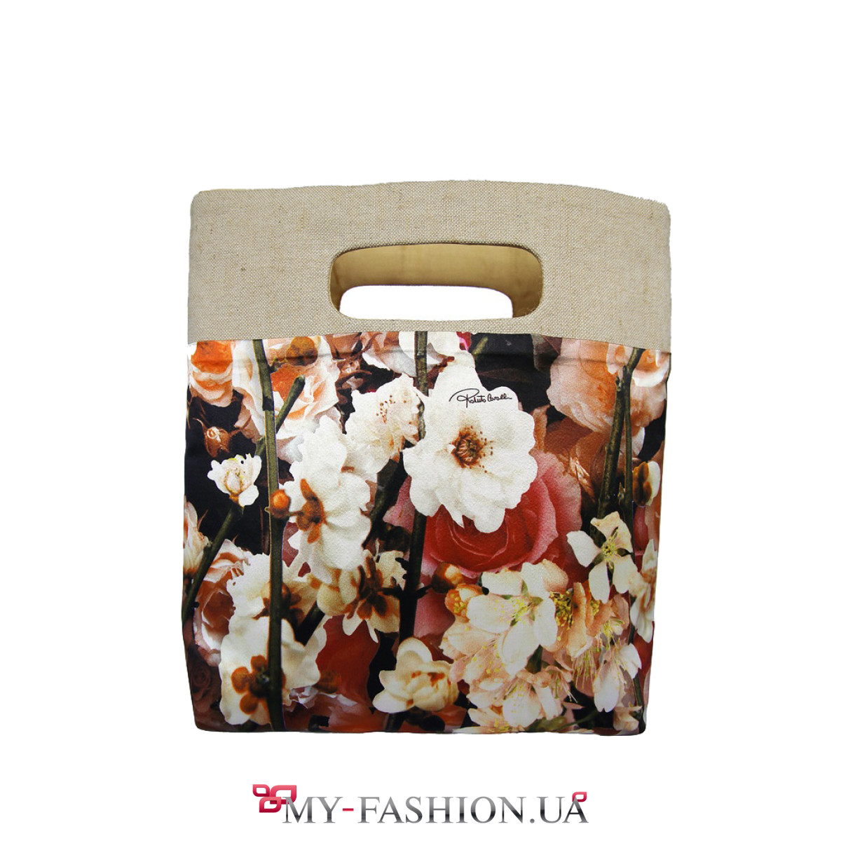 Оригинальная сумочка с ярким цветочным принтом станет для вас верной спутницей во время летних прогулок. Изделие имеет натуральную хлопковую полочку и атласное продолжение. Стильная молодёжная сумка прекрасно подходит для ежедневного ношения. Вы сможете носить сумочку только в руках. Комбинируйте с однотонными короткими летними платьями. Размеры изделия: 36х38 см. Возможно изготовления сумки на заказ по вашим размерам, стоимость при этом не изменится.