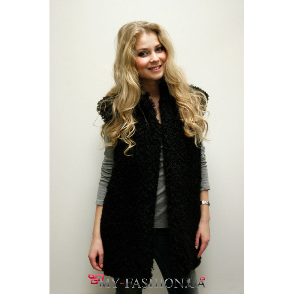 Шикарная длинноворсовая жилетка чёрного цвета от ZhukovskayaA. Уникальность её в том что ворс этой жилетки соткан из нитей, которые имитируют мех ламы. Она будет отлично сочетаться и с изысканным платьем и с брюками. В такой жилетке вы будете выглядеть очень стильно.